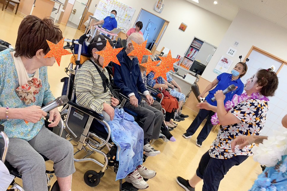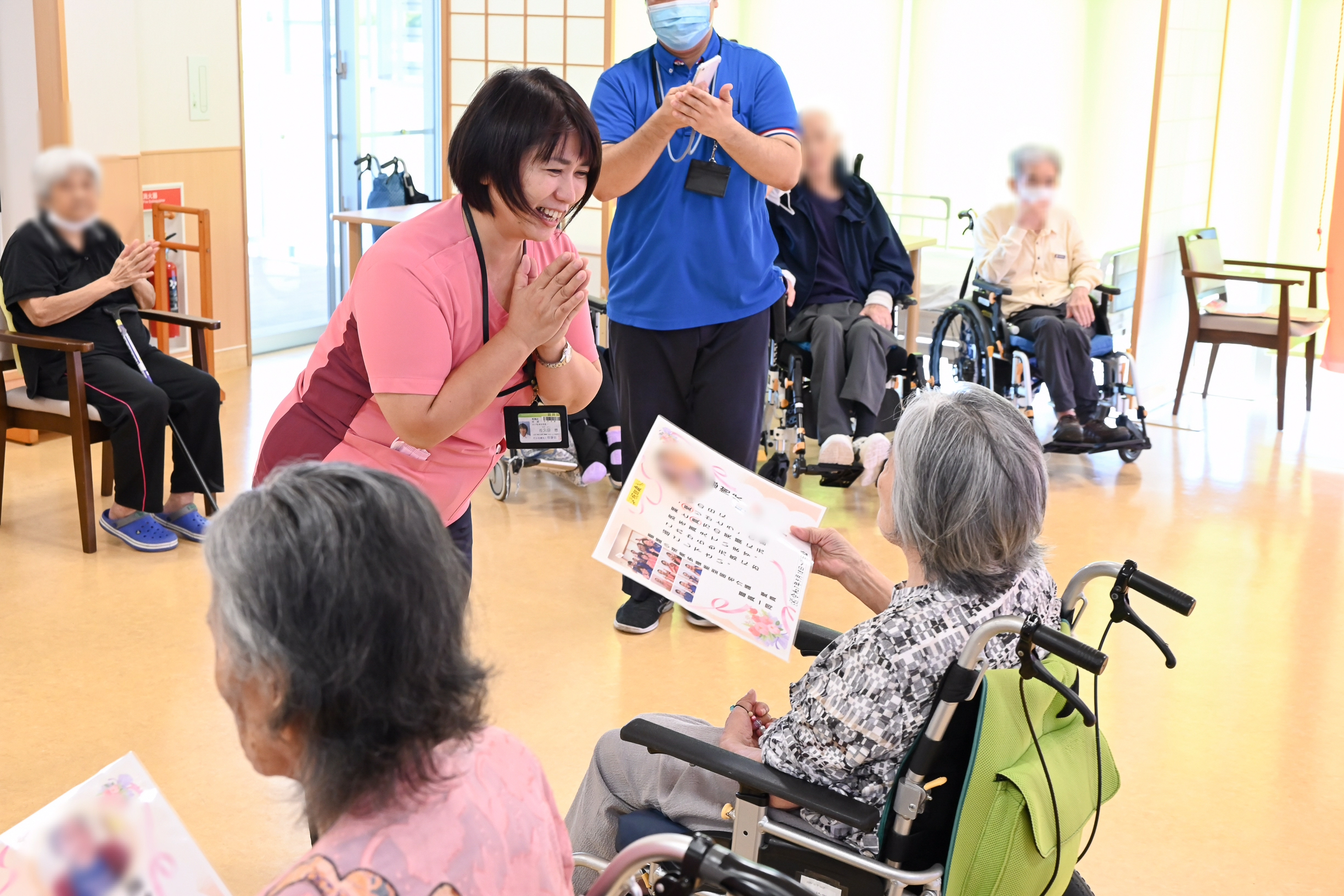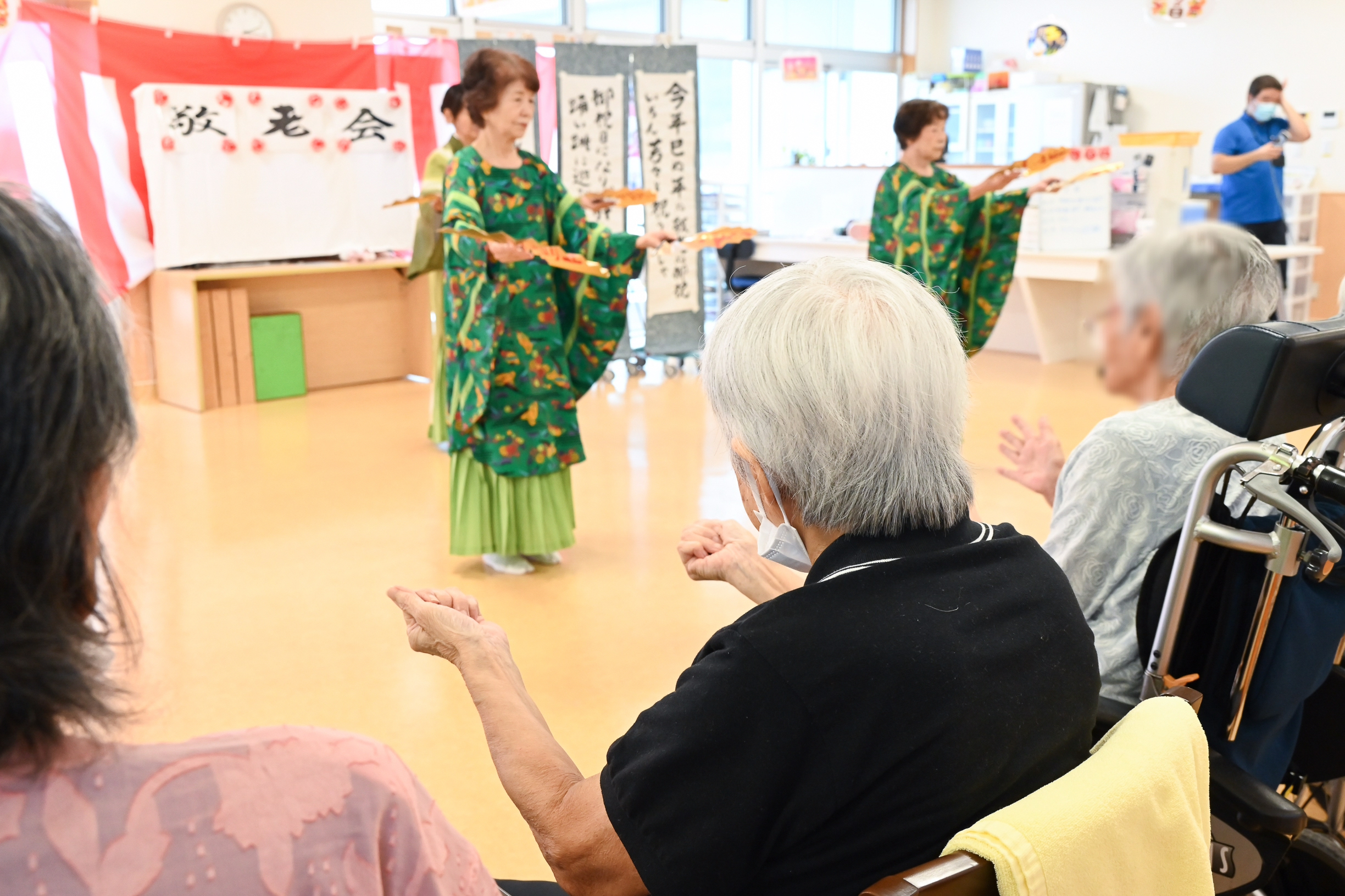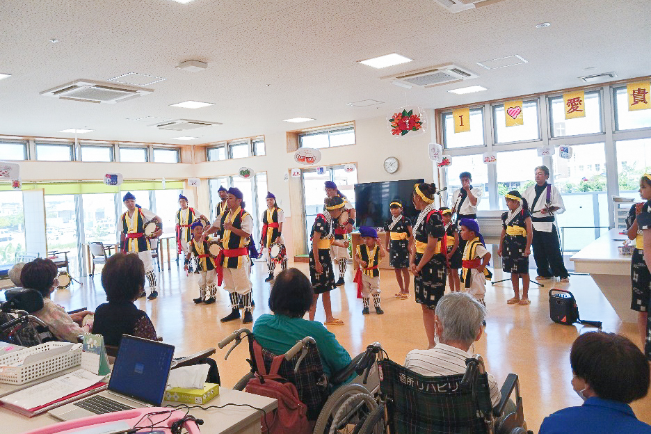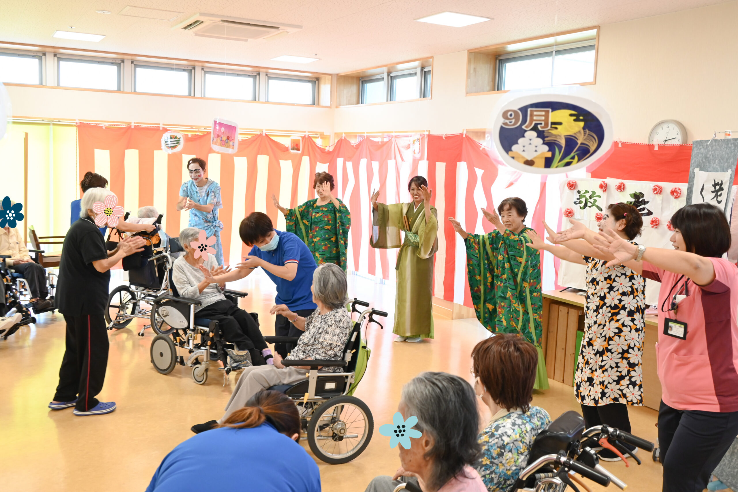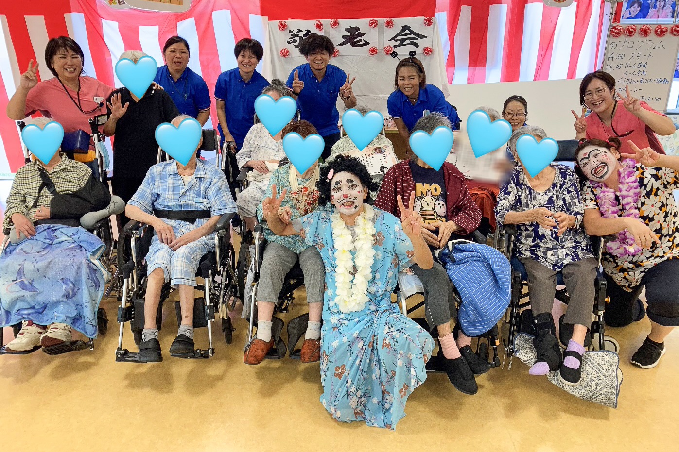 看護小規模多機能型居宅介護「愛貴」では、9月18・19日に敬老会を開催しました。今年は3名の方がトゥシビー(生年祝い)を迎え、みんなでお祝い!ご家族やご友人の皆さんも華やかな衣装で登場し、歌や踊りの余興で会場に笑顔の花を咲かせてくださいました🎶